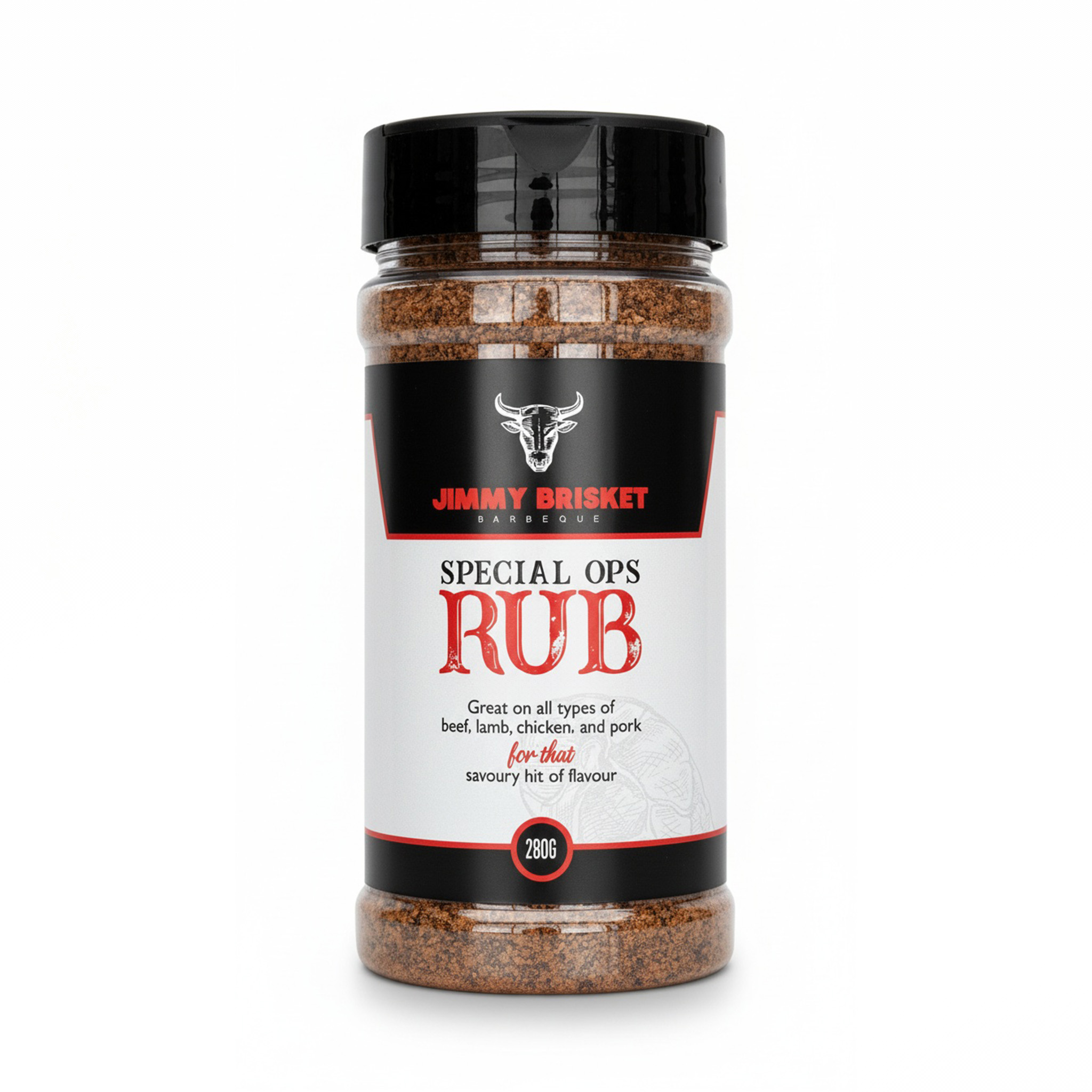 Crafted in-house by Jimmy Brisket Barbeque, it’s designed to bring out the best in beef, lamb, chicken, and pork — whether you’re smoking low ’n slow, grilling hot ’n fast, or roasting in the oven. Every shake delivers that bold, savoury hit of flavour that turns good meat into unforgettable BBQ.